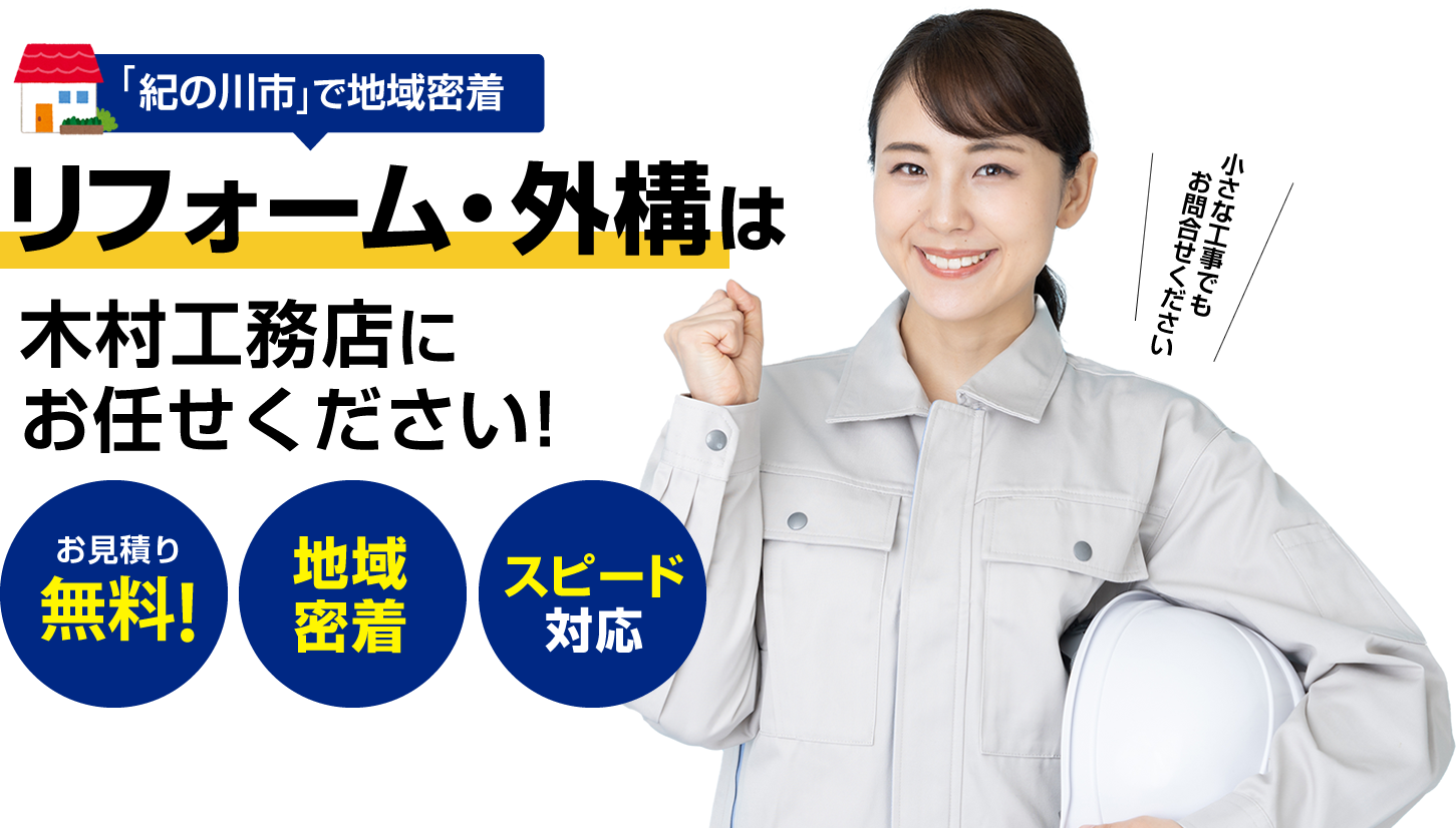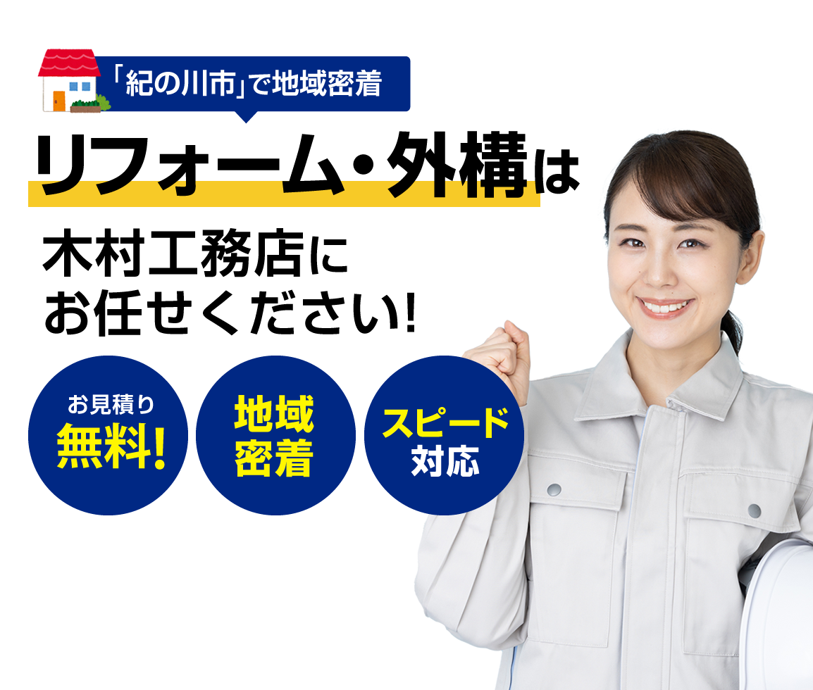 弊社はリフォーム・外構のプロフェッショナルとして、紀の川市エリアで、住宅に関する様々な工事を承っております。新築・リフォームを問わず、高い品質と適正価格をお約束いたします。また、施工の際は
